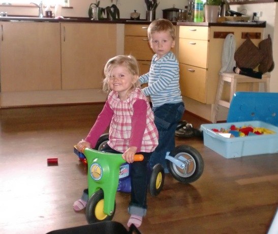 Foto 6 - Bianca og Oliver kører på løbecykel og scooter
