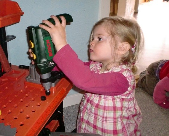 Foto 7 - Hvor er det bare sejt at besøge en dreng, som har en masse værktøjs-legesager. Der gik lige gør-det-selv i det, for Bianca, da hun opdagede, at en boremaskine drejer rundt og laver larm..