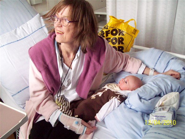 Billedet af Julius og min mor er taget på Rigshopitalet.