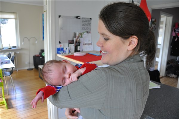 Her er et lile billede fra sidste uge og et fra tidligere idag, hvor man blev lidt træt i mors arme
