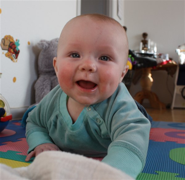Måtte lige dele lidt billeder af min lille dunderklump, han er ellers både skidt og snottet og hoster, men alligevel laver man bøllestreger på gulvet