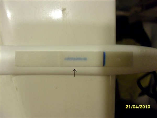 Synes jeg kan ane en svag markering, hvor stregen burde være (altså der hvor antistofferne er placeret), men kan ikke sige, at jeg ser en streg... :/