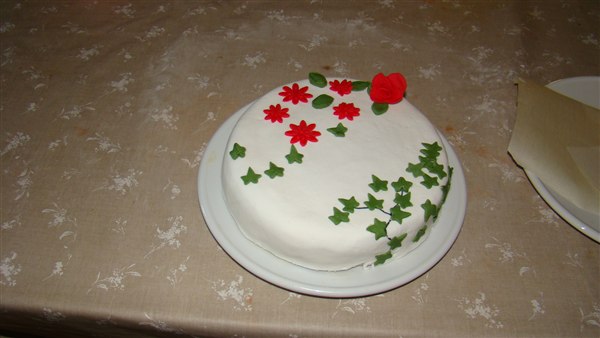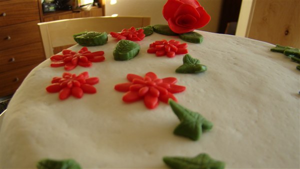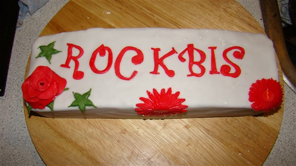 Rockbis kagen er en alm. chokoladekage og den måtte jeg ikke smøre op, så den er ikke glat glat. Det var første gang jeg prøvede bogstaverne og så de gerbera udstikkere som IKKE ville som jeg ville.
