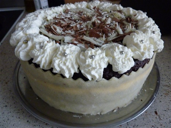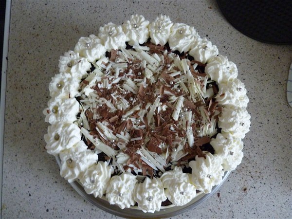 Bunde: 3 spsk kakao med top 200 g sukker 200 g smør 3 store æg 200 g siet mel 2 tsk bagepulver 100 g mandelflager