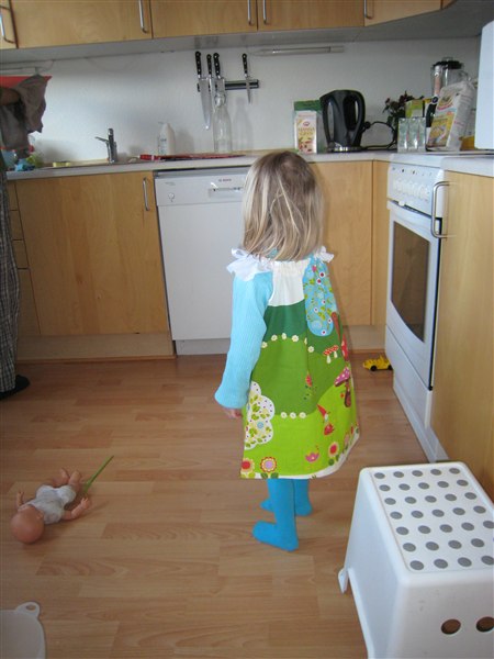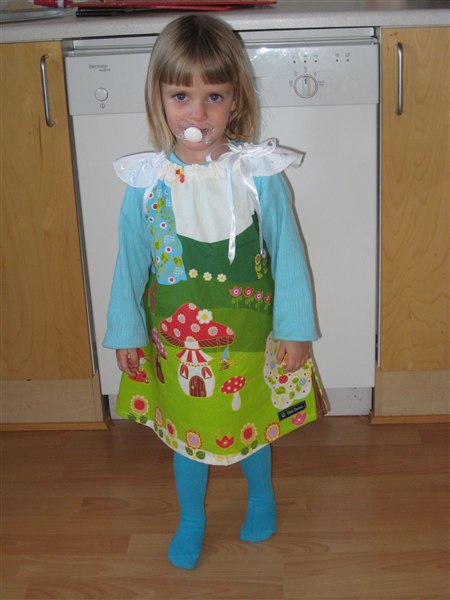 Så kom Annikas lækre Daub Deluxe kjole ind af døren...og den er bare skøn!! Har napset et par billeder af hende i den - men hun var ikke helt villig...hun var på vej i seng, og mente bestemt ikke, at hun skulle have fin kjole på