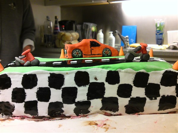 Den store kage er chokolade med hindbærmousse og tobleronecreme (det er jeg pjattet med).