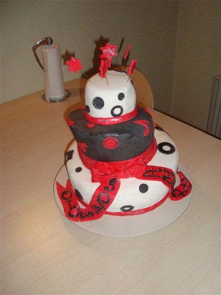 Jeg vil i hvert fald prøve at snakke næste weekends konfirmand fra at skal have sådan en, for jeg må indrømme at jeg ikke orker at bruge 2 dage bare på at lægge MMF på og jeg synes at kagen vil blive for tør hvis bundene skal være tykkere og fyldet mindre... Så vil ikke anbefale at gå igang med den...