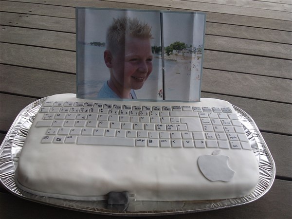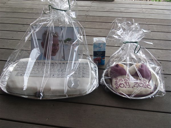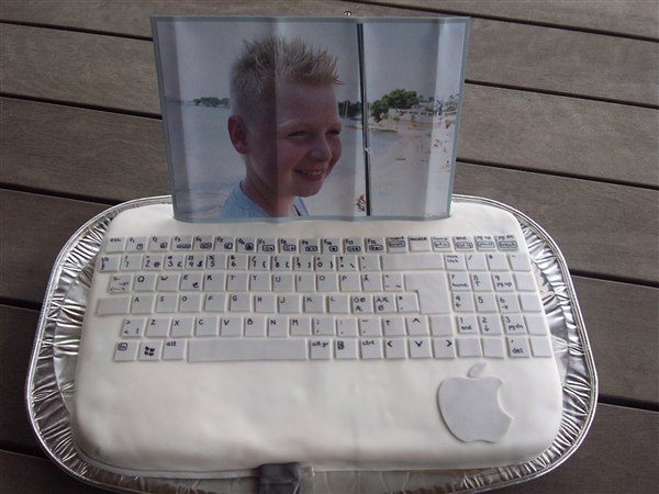 Så blev dagens sending kager afleveret. De var til Ingrid & Lillebror (fantastisk børnetøjbutik i Randers) Ejerens søn skulle konfirmeres i dag. Han er vild med computer, så skulle selvfølgelig have en computerkage, hans mor synes også vi skulle give ham røde kinder, så han fik også en brystkage