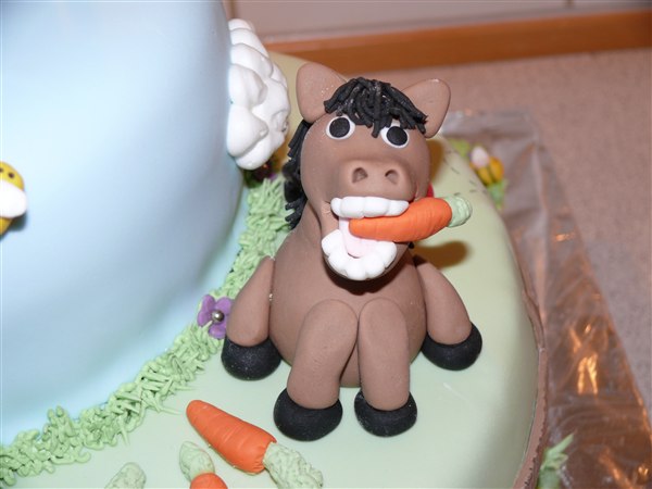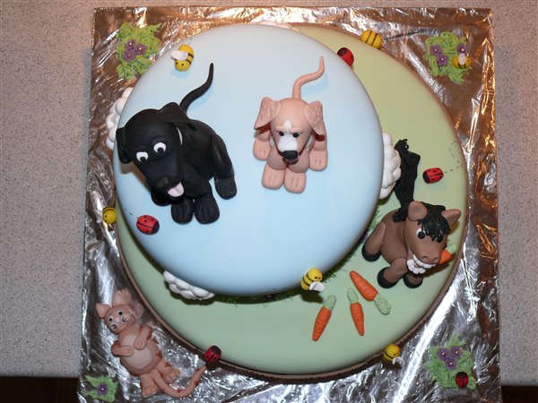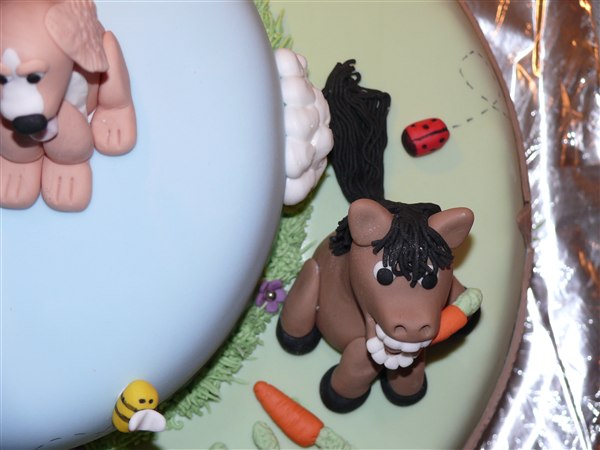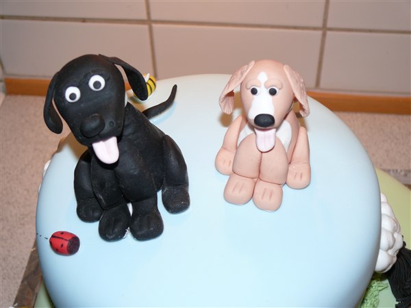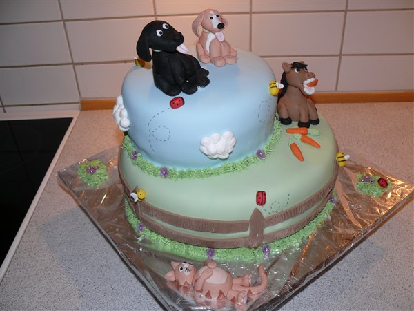 ! Bruden som bestilte kagen ønskede en kage med noget fra deres liv på deres gård. Så der kom deres to hunde, deres kat og en af deres 8 heste på
