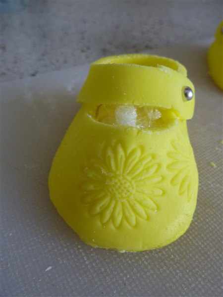 Hejsa. jeg limer sålen fast med vand, der bliver smurt på kanten af sålen, så kommer selve skoen udover, og den trykker jeg så fast på kanten af sålen. Kan det ikke passe at vi skal møde hinanden, den 13.juni hos Birgitte?