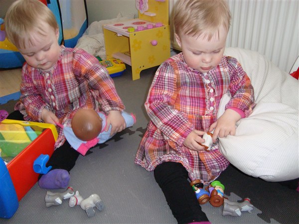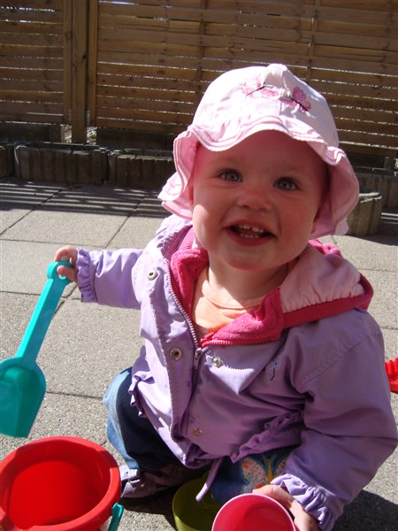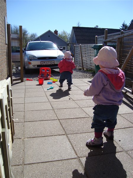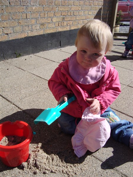 Så her kommer lidt billeder af pigerne fra den anden dag og i går hvor de fik deres nye skovl og spand..