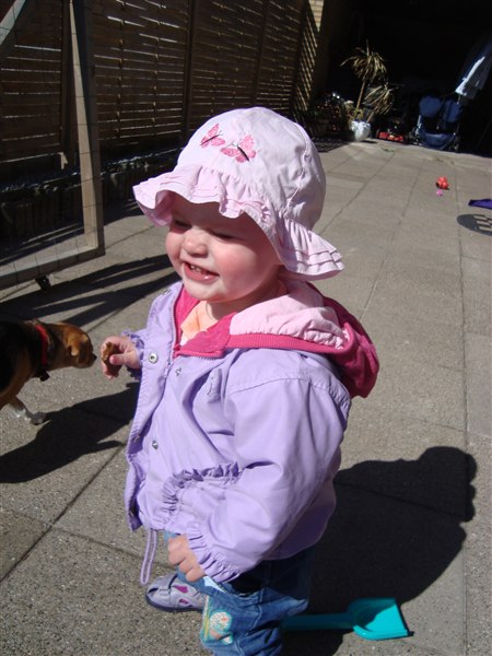 B13- Amalie i sin nye hætte trøje hun fik af sin far