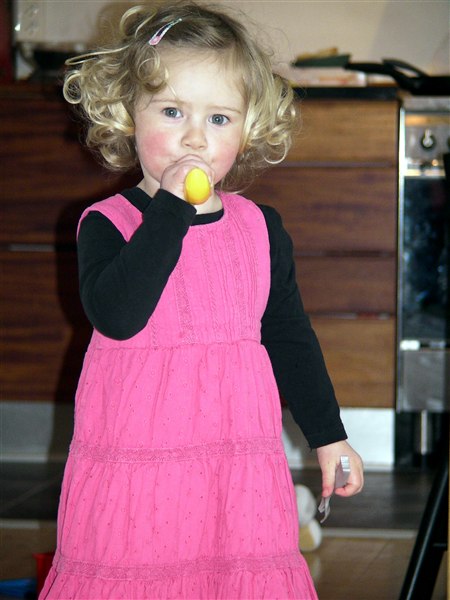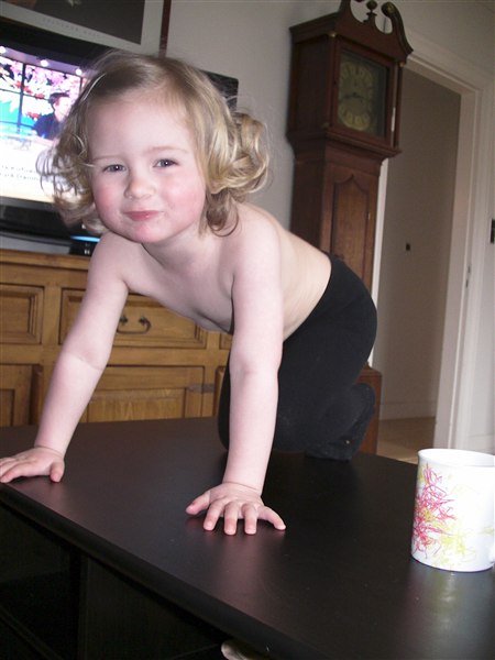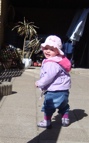 B12- Laura i sin nye hætte trøje hun fik af sin far