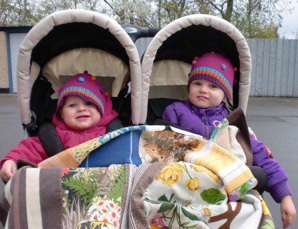 2) Pigerne i tvillinge-klapvognen
