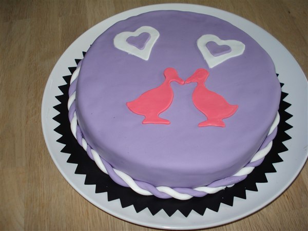 Og vil så lige sige at jeg har lavet en del kager efterhånden, men jeg kan absolut IKKE sno fondanten til en border, det kludrer altid for mig..