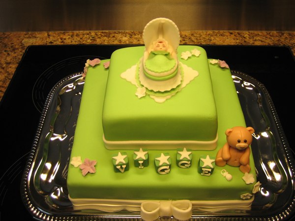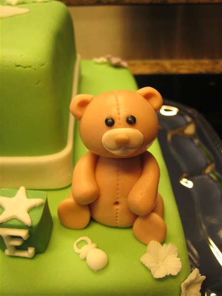 Ønsket lød på en helt grøn kage med vugge og bamse... så det blev det...