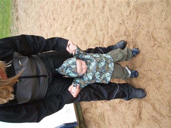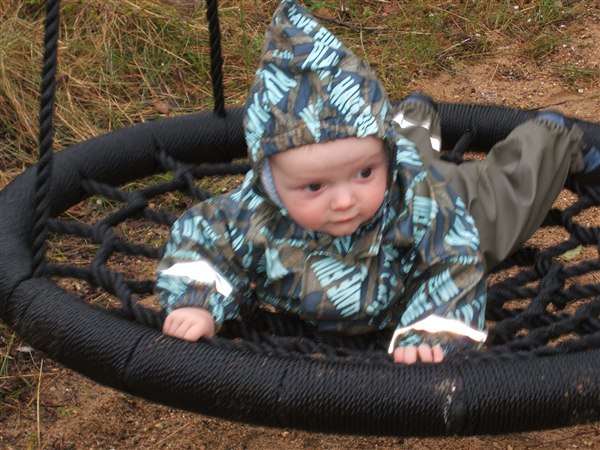 Vi gentog successen i torsdags. Dog godt nok kun et besøg på legepladsen, der ligger 50 m. fra vores hus. Endelig er den blevet renoveret og der er bla. kommet en sansegynge op. Knægten hyggede sig gevaldigt.