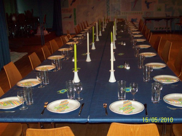 De var vilde med min bord opdækning og kagen vi havde fået lavet hos bageren og fars mad og der var masser af det, så vi spiser rester i dag, mums..... Hans Gudmor lavede nogle lækre muffins og hun havde lavet dem i farverne blå og grøn inde i, og samme farver glasur, selvføgelig