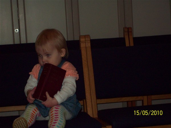 11 og 12. Cassandra i kirken. Gik lige et øjeblik fra mor og satte sig pænt der.