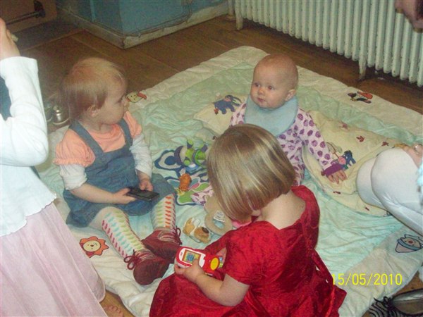 13-15. Børnene leger på legetæppet.