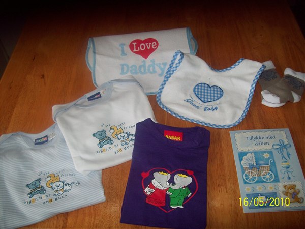 Billeder af gaverne og lidt af dåbsbarnet og familie.