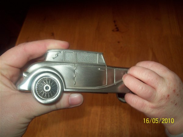 Sølv sparegris, en bil.