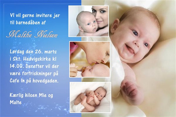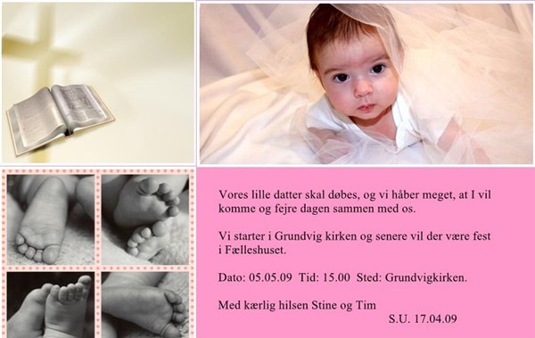 Jeg gik i et par hobbyforretninger og blev inspireret, det kunne være du også skulle det. Ellers synes jeg de fotoinvitationer man kan bestille på nettet er gode...