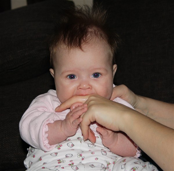 Hun er så sjov alt skal smages på nu, hendes hænder og sin mors hænder, elsker min lille guldklump.