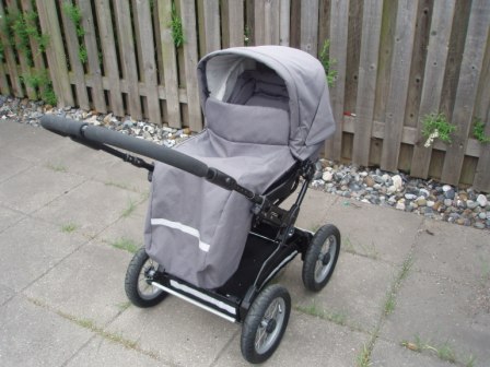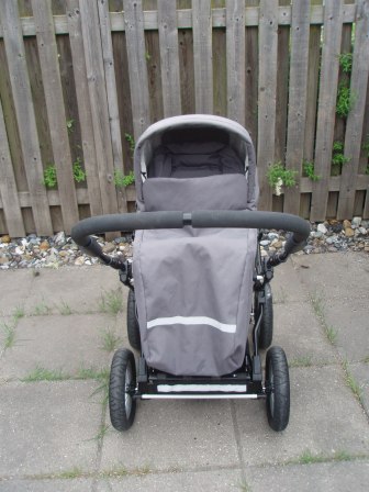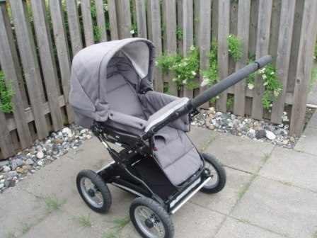 Den har lufthjul, langt liggemål, 92 cm og god varekurv. Fodpose, sele og regnslag følger med.