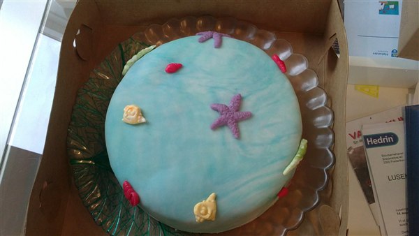 Billede nr. 14: Min egen fødselsdagskage serveret på arbejdet, efter strenge ordrer om at jeg skulle komme med en kage.