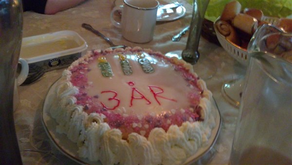 Billede nr. 15: Kenneth har lavet almindelig lagkage til Bastians 3 års fødselsdag.