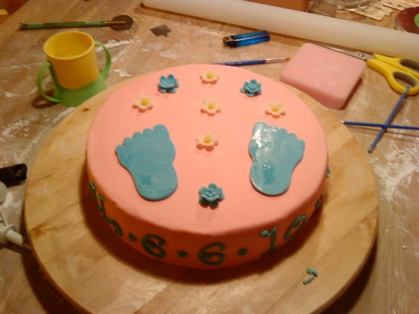 Billede nr. 12 og 13: Frejas tøsekage, til konfiramtion, sammen med fodboldkagen.