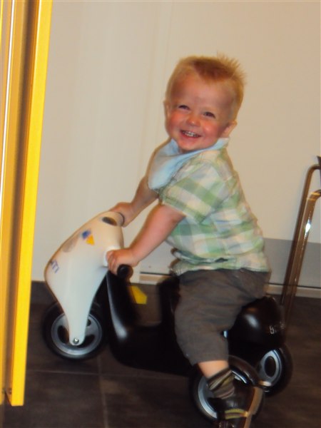 1. Frederic kører rundt i vores omklædnings rum med skabe - toiletter osv. Vild bandit..