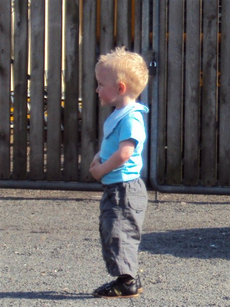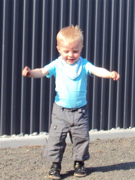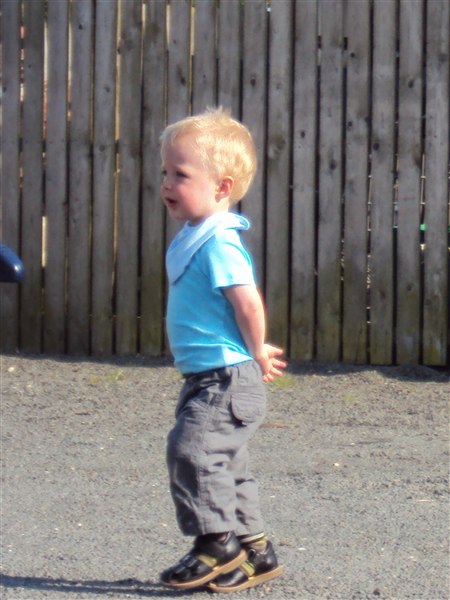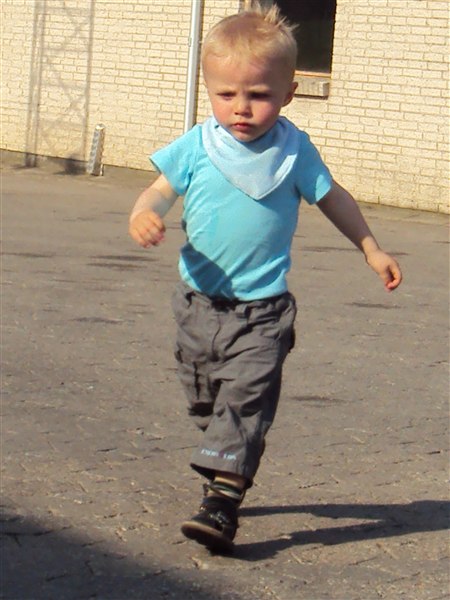 Da han så i lørdag render rundt og hygger udenfor - over alt - i alt (med bekymred farmand bagefter)