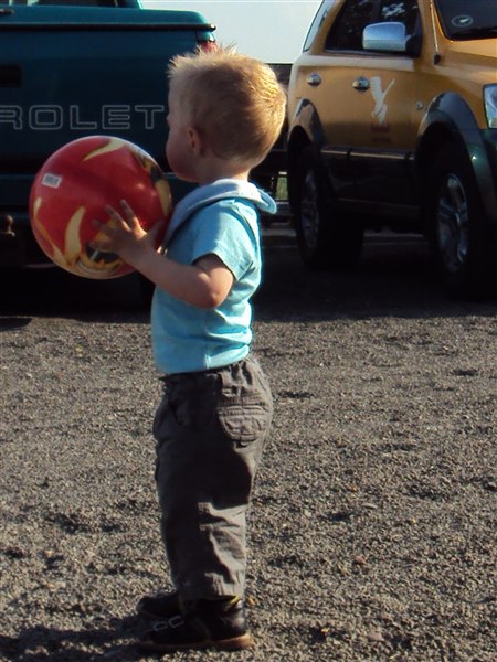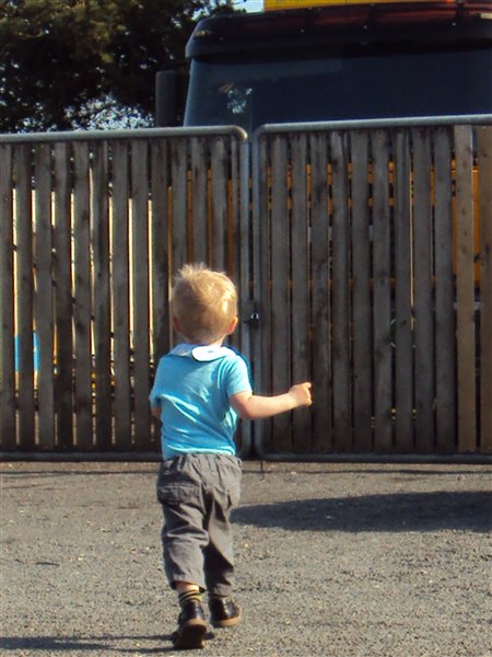I forige uge var han med til at bakke lastbilen på plads i garagehal og forklared ham at det var her de sover.. Han tog en finger op til munden og hvisked; shh mors lastbil sover...