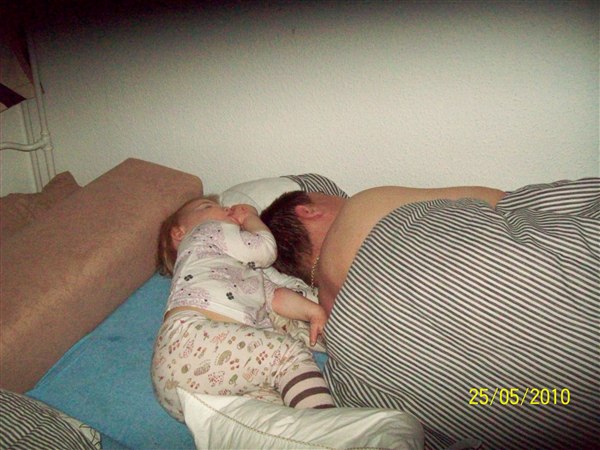 C kom ind til os i nat, og IGEN møvede hun sin far, jeg fik taget dette billedet i morges.