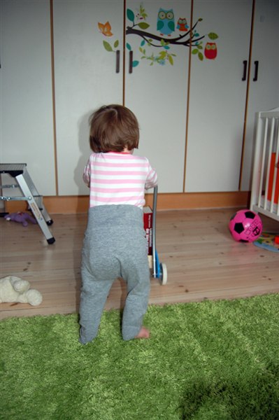 synes det er ret utroligt – fyssen sagde at jeg ville kunne se et ændret bevægelsesmønster inden for 3 uger, og det skal jeg love for jeg allerede kan her efter 10 dage!! hun kravler også normalt ca. halvdelen af tiden nu, alt afhængigt af underlaget. jeg må skynde mig at låne et videokamera så jeg kan filme hendes finurlige måder at komme rundt på inden de er helt væk!