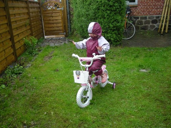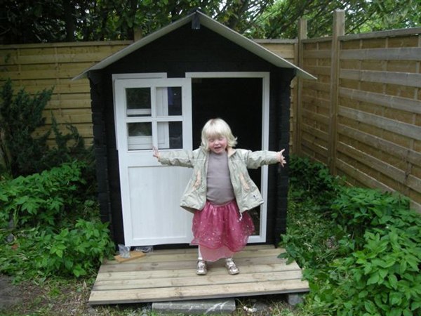 Nå, men da pigerne har fået mange penge i både jule og fødselsdagsgave, var der pludselig råd til både et spritnyt legehus og en ny CYKEL. Så i går brugte Jan og min papfar hele dagen på, først vores hus, og siden satte de legehuset op. Det vakte stor begejstring, da vi kom hjem fra mormor. Idag har Anna og farmand så været i haven i flere timer, og har samlet cyklen............her er lige et par billeder, af den stolte ejer af en PRINSESSE cykel og SLOT!!