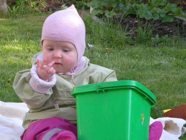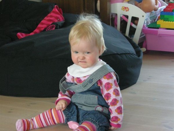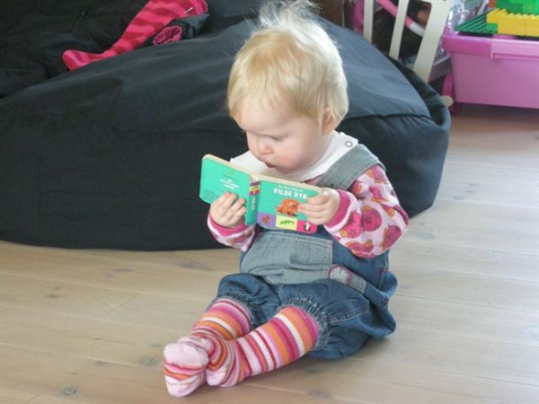 Også lige et par billeder af Lille-prinsessen, som er blevet ret belæst, og som nu kan tælle til 3 (se lige fingrene).
