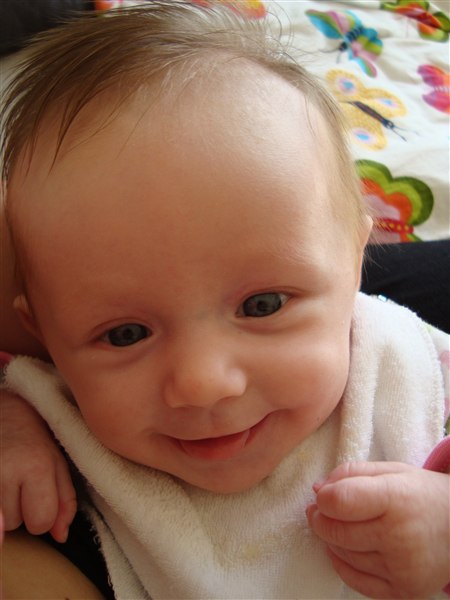 Ej - jamen altså - hun er jo bare SÅ dejlig! Sikken nogle dejlige billeder - hun er virkelig en smuk lille en! Så meget fint mørkt hår... :0) Jeg håber, det går godt hos jer!