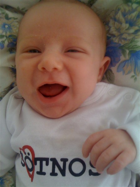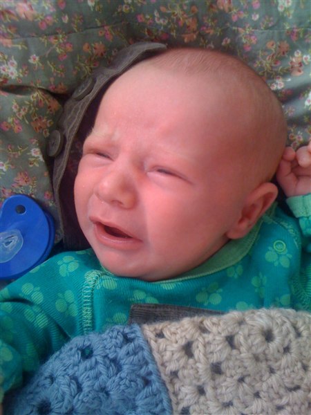 åh altså, at han allerede mestrer at græde OG se forurettet ud, det er lidt imponerende og tillykke med 1 måneders dagen