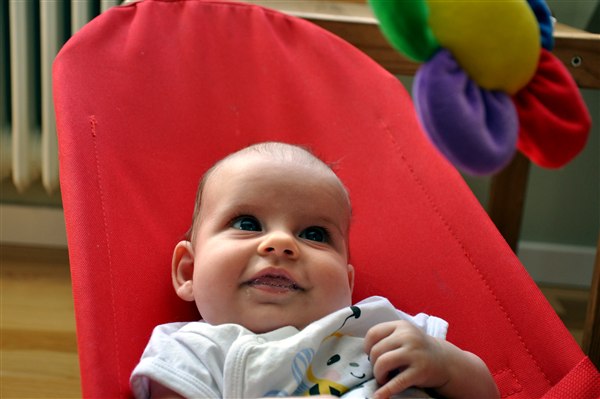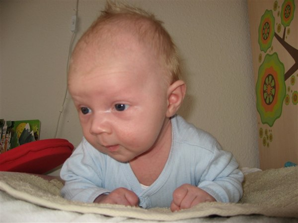Og hold da op, hvor er han god til at ligge på maven og holde hovedet! Han er rigtig fin