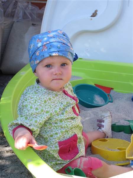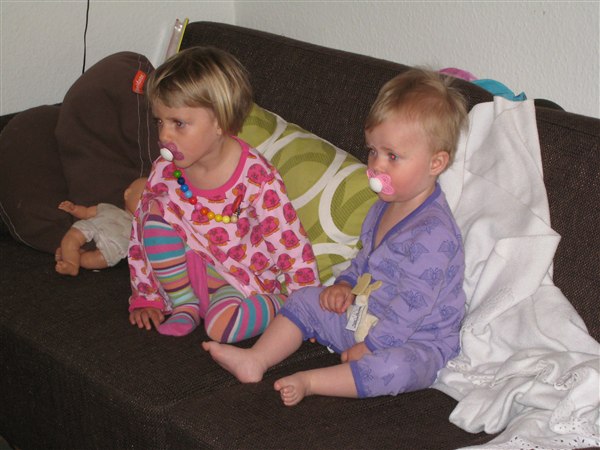 idamaria83 skriver: Det var da en fantastisk billedetråd!! Vi har slet ikke fået taget så mange billeder af ungerne på det sidste... men der er da lidt af dem: 1 - Smukke lille Lina i bedsternes sandkasse 2 - Nattøjspiger ser teletubbies 3 - Lina kunne ikke sove, så jeg tog hende ned i stuen - hvor hun lagde sig til at sove sådan der!! 4 - Lina netop hjemvendt fra første vuggestuedag - træt, men altid frisk på at lege med kamerasnoren 5 - Sådan kan man også vælge at indtage godnat-flasken