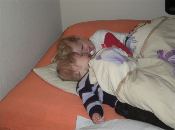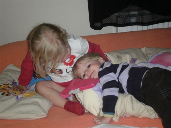 - Og tumlede rundt sammen inde i sengen efter deres lure.