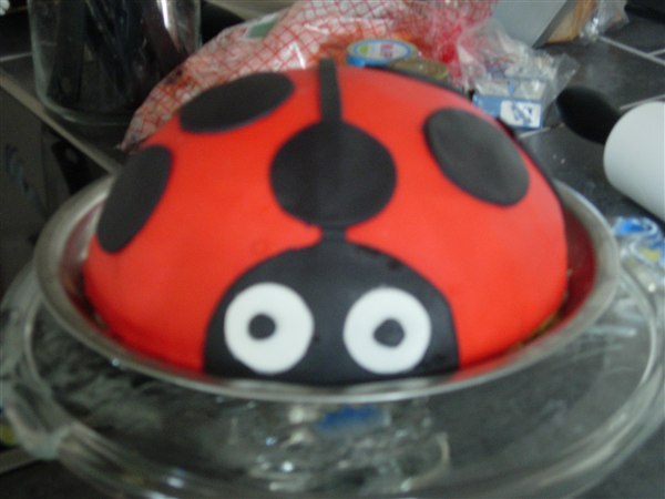 Findusinde skriver: Fondanten sprækkede flere steder i kanten, og gik i stykker flere steder da jeg lagde den over kagen.. Men jeg synes egentlig jeg fik den reddet meget godt..