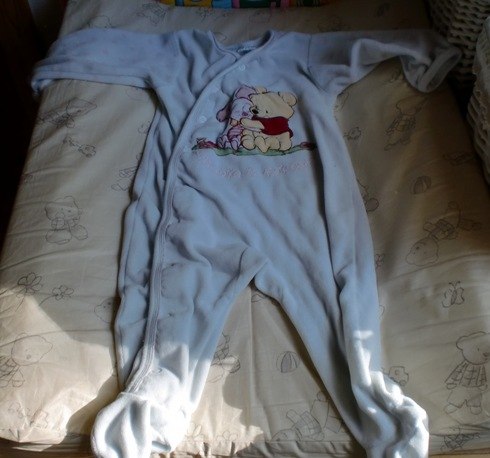 Og IdaT dragten har kun været brugt en enkelt gang eller to. Desværre har den fået en svag plet, som jeg først opdagede da jeg nær-tjekkede tøjet. Den er i størrelse 62.