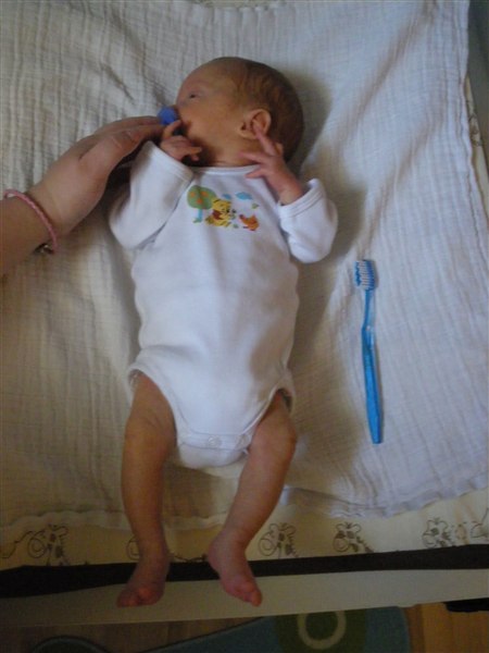I tråden hvor jeg lavde min FB postede jeg et billede af Marcus hvor han er et par dage gammel, og ligger ved siden af en tandbørste.
