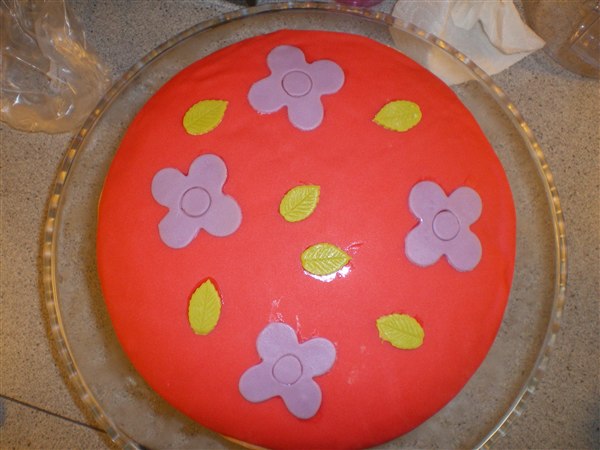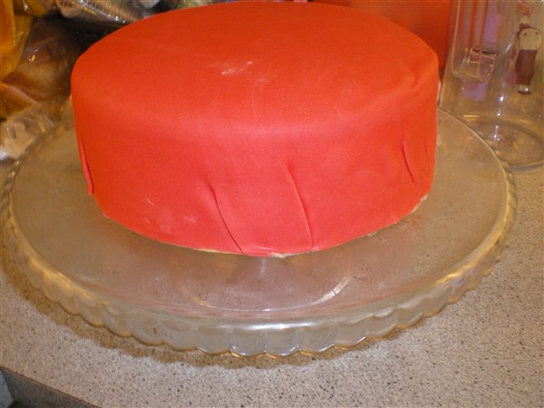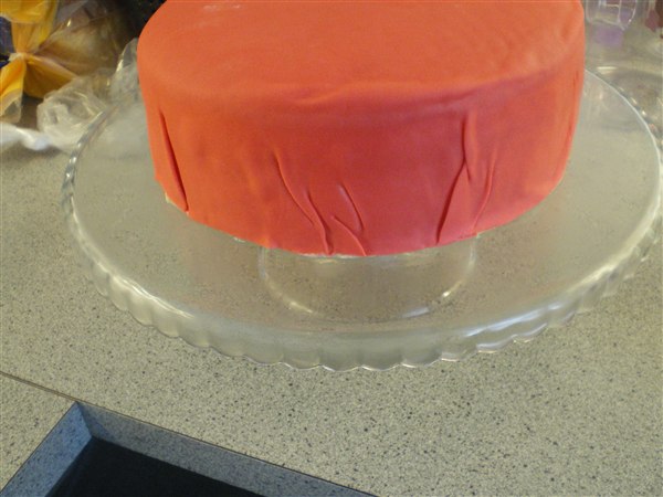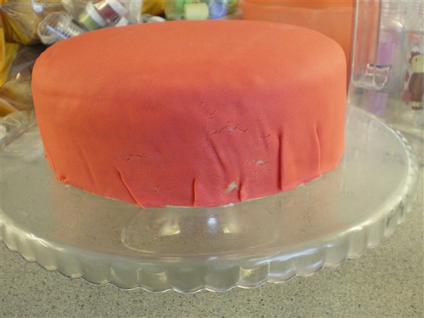 Men spørgsmålet er - Ruller jeg fondanten alt for stort ud, når det skal bruges som overtræk på kagen? Inden jeg ligger det udover kagen, bukker jeg fondanten sammen 2 gange og ligger den derefter på midt på kagen, så den bliver dækket til, når jeg folder det ud..