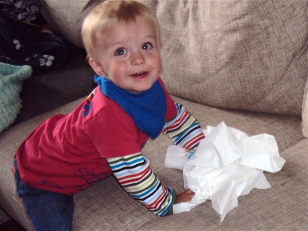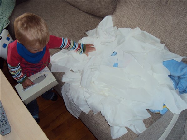 Suk, var midt i at skralde kartofler, da der er et stykke tid har været ret stille inde i tv stuen. Kunne dog høre en vedvarende mystisk lyd - alla at rive et papir over, hm - skrælled blot videre...