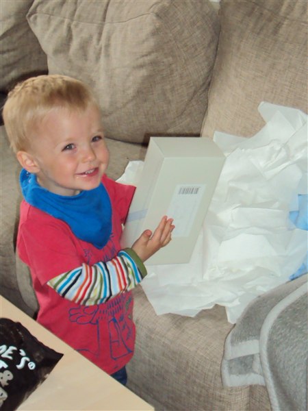 Bad ham ligge dem på plads igen, men ak, de er jo ret svære at få ned i den lille kasse - når man tager en hundfuld hver gang. Så vi måtte på jagt efter en større kasse til dem...